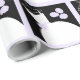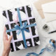 Papel de envoltura con temática de novia en tonos violetas con un estilizado vestido boda y flores sobre un fondo negro. Un diseño de personalizable para que puedas personalizar con tu propio texto, imágenes e ideas.