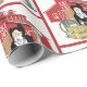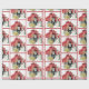 Una pareja occidental de estilo personalizado con una cerca, un bale de heno y una cuerda de lariat frente a un granero rojo impreso en papel de envoltura de regalo para bodas.
