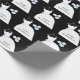 Papel de envoltura con temática de novia en tonos azules con un estilizado vestido boda y flores sobre un fondo negro. Un diseño de personalizable para que puedas personalizar con tu propio texto, imágenes e ideas.