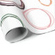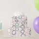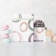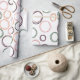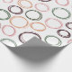 Este papel de envoltura tiene un diseño boho de círculos superpuestos en naranja rosa retro, púrpura, verde musgo y caramelo.