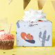Patrón de boho lindo con elementos occidentales juguetones al estilo Navidad. colores rosa, azul, naranja y blanco Subió en un fondo azul claro.