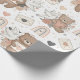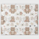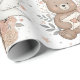 A soft and charming seamless bohemian-style nursery pattern wrapping paper featuring adorable brown teddy bears in playful poses, paired with warm, arched boho rainbows decorated with hearts and dotted accents. Designed in a modern Scandinavian-inspired style, the artwork uses warm, muted tones of brown, taupe, beige, and blush pink set against a light neutral background, creating a gender-neutral and soothing aesthetic