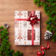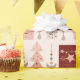 A delicate and pretty pink boho pattern with intricately wrapped gifts, celestial garlands, and festive holiday trees and candles.
