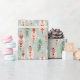 Un divertido boho de moda verde, terracota y plumas y árboles rosados en este Navidad envuelto en papel para las vacaciones.