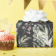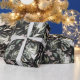 Una visión moderna sobre el patrón de flores silvestres acuáticas regalo papel envuelto en flores rosadas polvorientas pastel con follaje verde sabio sobre un fondo negro. Perfecto para un regalo de cumpleaños, regalo de ducha en primavera y verano.