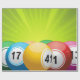 Un diseño que celebra el juego del bingo con algunas bolas de bingo sobre un fondo verde. Este diseño se ve realmente efectivo en este papel de ajuste