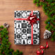 Papel de envolvimiento de bolas de Navidad blanco y negro con Santa, reno, bolas de picnic y copos de nieve sobre fondo de cuadros negros y blancos. Gran idea para envolver tus regalos para tu amigo o miembro de tu familia de pickleball