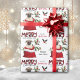 El patrón repetido en este lindo Navidad envolviendo papel es una imagen de un adorable perro Pug mirando fuera de una bolsa de regalo de Navidad. Detrás de él hay una espiral de bayas rojas y sagradas. Un pájaro rojo y negro bullfinch está a punto de aterrizar. El estilizado texto rojo y negro de chapa búfala dice MERRY CHRISTMAS", y "Feliz Año Nuevo" está en verde oscuro. Su firma está en dos campos para que usted lo personalizar. Asegúrese de ver las etiquetas de regalo coincidentes.