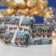 This festive design captures the joyful spirit of the holiday season, featuring an adorable dogs.Nestled in a winter wonderland, complete with a decorated Christmas tree, and beautifully wrapped presents. Snowflakes gently fall, adding a magical touch to the scene, while the vibrant colors of the holiday decorations create a warm and cheerful atmosphere.