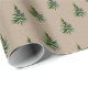 Un pequeño papel de envolvimiento de pino en el árbol de Navidad con pequeños abetos en un patrón repetido.