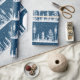 Un bosque de invierno blanco y nevado cubierto de nieve blanca que cae sobre un fondo de color azul marino. El color de fondo de este artículo se puede editar y cambiar a un color de su elección en la Herramienta de diseño.