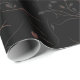 Elegant wrapping paper featuring a seamless botanical line art pattern with flowing stems, delicate leaves, and small floral accents. Soft blush and muted copper tones rest on a deep charcoal background, creating a calm, refined, and timeless look.