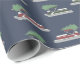 Este papel de envoltura con estampado es perfecto para Navidades. El envoltorio de regalo incluye ilustraciones de botas de pontón con un árbol de Navidad encima colocado sobre un fondo azul marino.