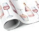 Papel De Regalo Botellas de vino con acuarela elegante Rosa Rosado