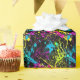 Luminoso manto de pintura de neón, este diseño presenta un patrón de manchas de pintura de neón brillante sobre un fondo negro.