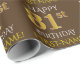 Este diseño de papel envolvente presenta un mensaje como "FELIZ 81º CUMPLEAÑOS", con el "81º" con un aspecto falso/imitación de oro. También tiene un nombre personalizado y un fondo de color marrón. Tal vez podría usarse cuando se envuelven regalos para el cumpleaños número ochenta de alguien. [~Z0000133]