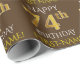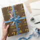 Este diseño de papel envolvente incluye un mensaje como "FELIZ CUMPLEAÑOS 74", con el "74" con una apariencia de oro falsa/imitación. También tiene un nombre que se puede personalizar y un fondo de color marrón. Tal vez podría usarse cuando se envuelven regalos para el cumpleaños setenta y cuatro de alguien. [~Z0000133]