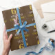 Este diseño de papel envolvente presenta un mensaje como "FELIZ SEIS CUMPLEAÑOS", con el "6º" en apariencia de oro falso/imitación. También tiene un nombre personalizado y un fondo de color marrón. Tal vez podría ser usado cuando se envuelven regalos para el sexto cumpleaños de alguien. [~Z0000133]