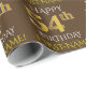 Este diseño de papel envolvente incluye un mensaje como "FELIZ 54º CUMPLEAÑOS", con el "54º" con una apariencia de imitación de oro. También tiene un nombre que se puede personalizar y un fondo de color marrón. Tal vez podría ser usado cuando se envuelven regalos para el cincuenta y cuarto cumpleaños de alguien. [~Z0000133]
