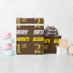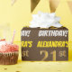 Este diseño de papel envolvente incluye un mensaje como "¡EL CUMPLEAÑOS 21 DE ALEXANDRA!", con el "21º" con un aspecto de color falso/imitación de color dorado, y con el nombre y "CUMPLEAÑOS" en un tipo de letra divertido y audaz. El nombre es personalizable y el fondo es marrón. El envolvimiento de papel como este podría ser usado cuando se le dan regalos de cumpleaños a alguien en celebración de su 21º cumpleaños. [~Z0000211]