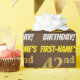 Este diseño de papel envolvente incluye un mensaje como "¡CUMPLEAÑOS 42 DE PRIMER NOMBRE!", en el que el "42" tiene un aspecto de color falso/imitación de oro, y con el nombre y el "CUMPLEAÑOS" en un tipo de letra divertido y audaz. El nombre es personalizable y el fondo es marrón. El envolvimiento de papel como este podría ser usado cuando se le dan regalos de cumpleaños a alguien en celebración de su 42 cumpleaños. [~Z0000211]