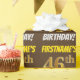 Este diseño de papel envolvente incluye un mensaje como "¡CUMPLEAÑOS 46 DE FIRSTNAME!", en el que el "46" tiene un aspecto de color falso/imitación de color dorado, y con el nombre y el "CUMPLEAÑOS" en un tipo de letra divertido y audaz. El nombre se puede personalizar y el fondo es marrón. El envolvimiento de papel como este podría ser usado cuando se le dan regalos de cumpleaños a alguien en celebración de sus cuarenta y seis años. [~Z0000211]