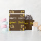 Este diseño de papel envolvente incluye un mensaje como "¡El quinto cumpleaños del primer nombre!", y el "quinto" tiene una apariencia de color falsa/imitación dorada. El nombre se puede personalizar y el fondo es marrón de colores. Tal vez podría ser usado cuando se envuelven regalos para el quinto cumpleaños de alguien. [~Z0000180]