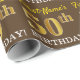 Este diseño de papel envolvente incluye un mensaje como "¡50 cumpleaños!", y el "50" tiene un aspecto de color falso/imitación dorado. El nombre se puede personalizar y el fondo es marrón de colores. Tal vez podría ser usado cuando se envuelven regalos para el quincuagésimo cumpleaños de alguien. [~Z0000180]