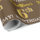 Este diseño de papel envolvente incluye un mensaje como "¡El sexto cumpleaños de FirstName!", y el "sexto" tiene una apariencia de color falsa/imitación dorada. El nombre se puede personalizar y el fondo es marrón de colores. Tal vez podría ser usado cuando se envuelven regalos para el sexto cumpleaños de alguien. [~Z0000180]
