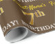 Este diseño de papel envolvente incluye un mensaje como "¡El séptimo cumpleaños del nombre!", y el "séptimo" tiene un aspecto de color falso/imitación dorado. El nombre se puede personalizar y el fondo es marrón de colores. Tal vez podría usarse cuando se envuelven regalos para el séptimo cumpleaños de alguien. [~Z0000180]