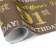 Este diseño de papel envolvente incluye un mensaje como "¡El 91º CUMPLEAÑOS!", en el que el "91º" tiene un aspecto de color falso/imitación dorado. El nombre se puede personalizar y el fondo es marrón. Tal vez podría ser usado cuando se envuelven regalos para el cumpleaños noventa de alguien. [~Z0000180]