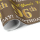 Este diseño de papel envolvente incluye un mensaje como "¡El 96º CUMPLEAÑOS del Nombre!", mientras que el "96º" tiene un aspecto de color falso/imitación dorado. El nombre se puede personalizar y el fondo es marrón de colores. Tal vez podría usarse cuando se envuelven regalos para el cumpleaños noventa y seis de alguien. [~Z0000180]