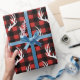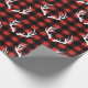 Papel rústico de envoltura con ciervo blanco con un patrón de coraje. El fondo es negro de la mancha de verificación de búfalo, pero se puede cambiar el color rojo. ¡Envuélvala esta temporada de vacaciones en audaz estilo rústico salvaje! ¡Destacar entre ese montón de regalos!