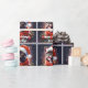Una francesa blanca y negra lleva puesto un gorro rojo mientras los Navidades se iluminan con el fondo.