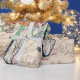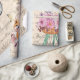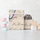 Papel de envolvimiento vintage de ephemera floral con adorable bulldog inglés, flores y bicicleta. Perfecto para proyectos artesanales o envoltura de regalo.