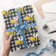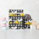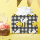 Gráfica de abejorros en color negro y blanco sobre fondo de gingham.
