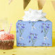 Un ramo de flores azules con un arco blanco sobre fondo azul. Se puede cambiar el color de fondo.