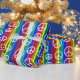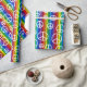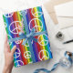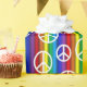 Arte abstracto de diversos signos de la paz blancos clasificados con un arco iris vertical como fondo.