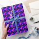 Papel de embalaje de vacaciones con caballos superpuestos de color rosa y azul sobre un fondo negro. ¡Personalizable. Moderno y de moda, el papel de envoltura perfecto para los amantes del equino.