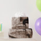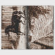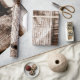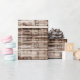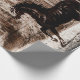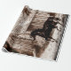 Rústica casa de campo con fondo de granero de madera con periódico vintage y sello de caballo.