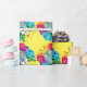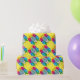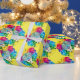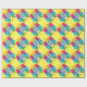 Diseño de la cabeza de leones geométricos con arco iris sobre amarillo. El color brillante hace de un majestuoso león