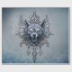 Cabeza mística de lobo. Los ojos del lobo brillan en un amarillo hipnótico, como si hubieran capturado la luz de las estrellas. Miran profundamente en el alma del espectador y parecen tener el conocimiento de los tiempos pasados. Su boca se abre en un gruñido amenazante. En este momento, el lobo se convierte en el guardián de un mundo olvidado, donde los mitos cobran vida y los límites entre la realidad y la fantasía se desdibujan.