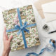 Un adorable cachorro Pug tendido en una canasta de mimbre es la característica en el patrón de este papel de envolver de regalo de vacaciones. El retrato está en medio de un patrón de bayas verdes y rojas. Perfecto para cualquier amante de Pug Dog durante la temporada de Navidades.