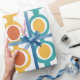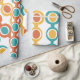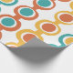 Este papel de envoltura tiene un diseño moderno de mediados de siglo de círculos conectados entre sí haciendo una cadena con círculos blancos y coloreados dentro. ¿Quieres colores diferentes? Mándame un mensaje.