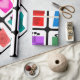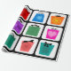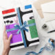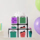 Coloridas cajas de regalo decoración en cuadrados negros sobre fondo blanco