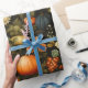 Papel De Regalo Calabaza de cosecha clásica y flores negras
