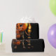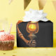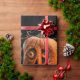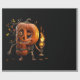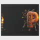 Una linterna de calabaza divertida de Halloween en forma de la letra "P" sosteniendo una lámpara con una llama.