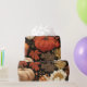 Un ilustracion rico y vibrante que exhibe una variedad de calabazas de diferentes formas y colores, rodeadas de hojas de otoño, bayas y flores de temporada. Los tonos cálidos de naranja, amarillo y marrón contrastan con el fondo oscuro, evocando la esencia de la caída. Esta compleja composición le da vida a la abundancia de la temporada de cosecha.