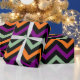 Ropa de calabaza, púrpura, verde y negra, patrón de rayas de chevron, un diseño sencillo pero elegante