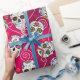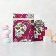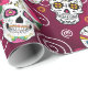 Un colorido envoltorio de regalo para las festividades del Día de los Muertos, con una variedad de cráneos decorativos de azúcar con acentos florales y giratorios sobre un fondo opcional de efecto subió rojo y texturizado. Si lo prefiere, cambie a cualquier otro color de fondo simplemente eliminando la capa roja. Busque ID725 para ver otras opciones de color y productos con este divertido patrón.
